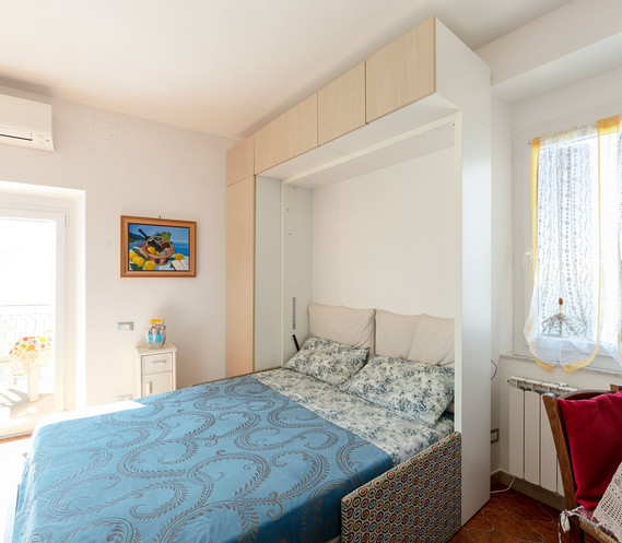 Seaview apartment with panoramic terrace overlooking the sea. The entrance through a little courtyard from the main "carugio"of the village. At the ground floor a large living room with sofa bed, kitchen with window and the living terrace overlooking the sea. A beautiful 180 degrees point of view on the coast of % Terre National Park. At the first floor a double bedroom with little balcony overlloking the sea, a small hallway with a single sofa bed. The house is 20 mt far from the Panoramic Terrace of Corniglia called "Santa Maria". Air conditioning and free-wifi. Suitable solution for long-medium staying but available also for short staying. (min. 3 notti)